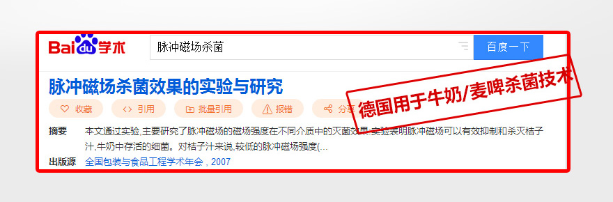 6、德國用于食品脈沖磁場殺菌技術(shù)